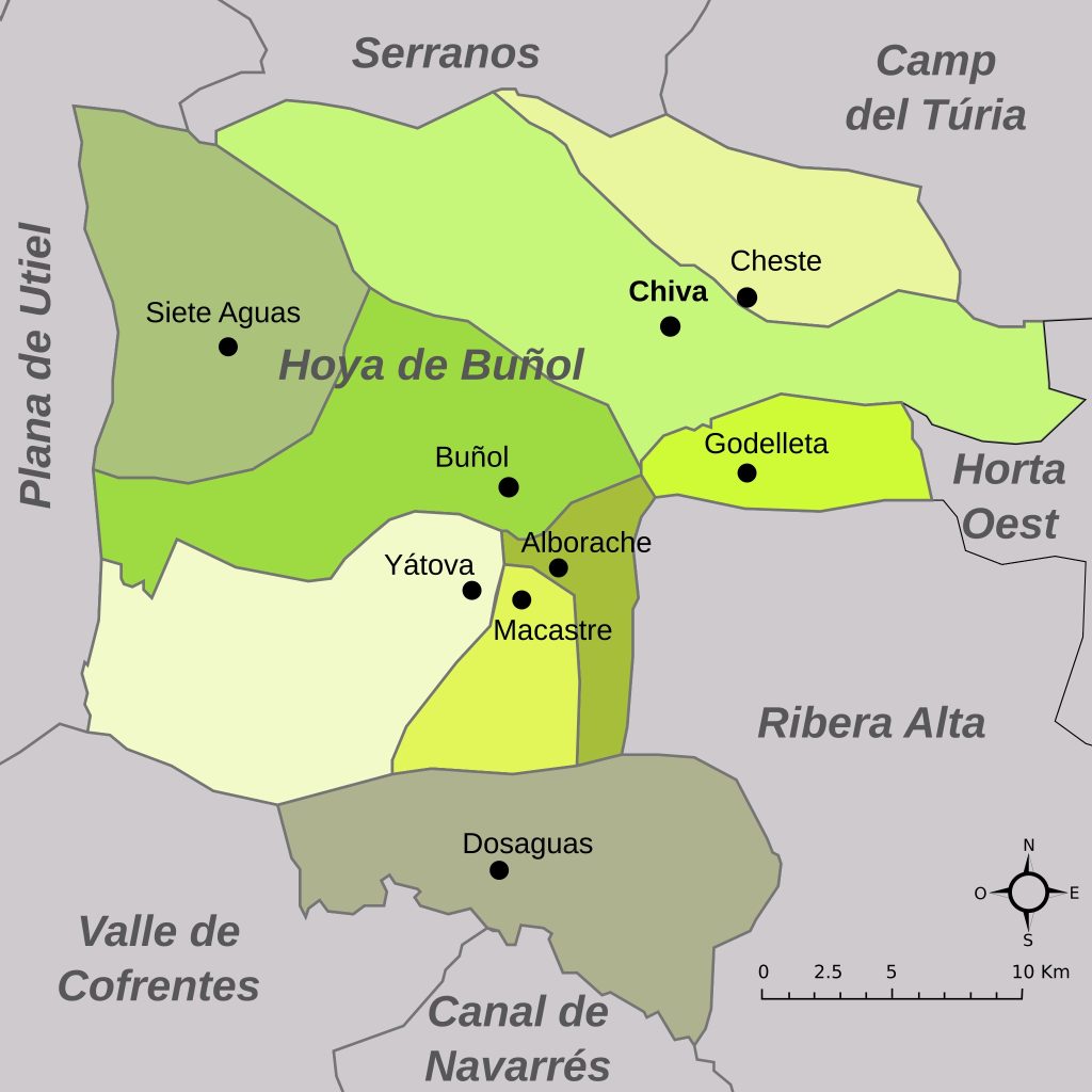 Buñol está estratégicamente situado a menos de 30 min de Valencia (40 km), a 25 min del aeropuerto de Valencia (35 km) y a 28 min de la estación de AVE de Requena-Utiel (38 km).